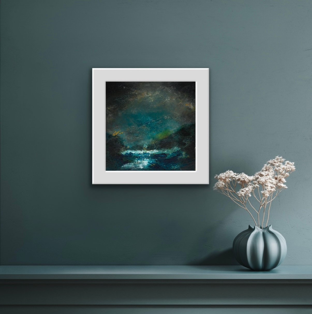 This is a hand-painted white wooden float frame. Please see the reference photograph for the actual frame.