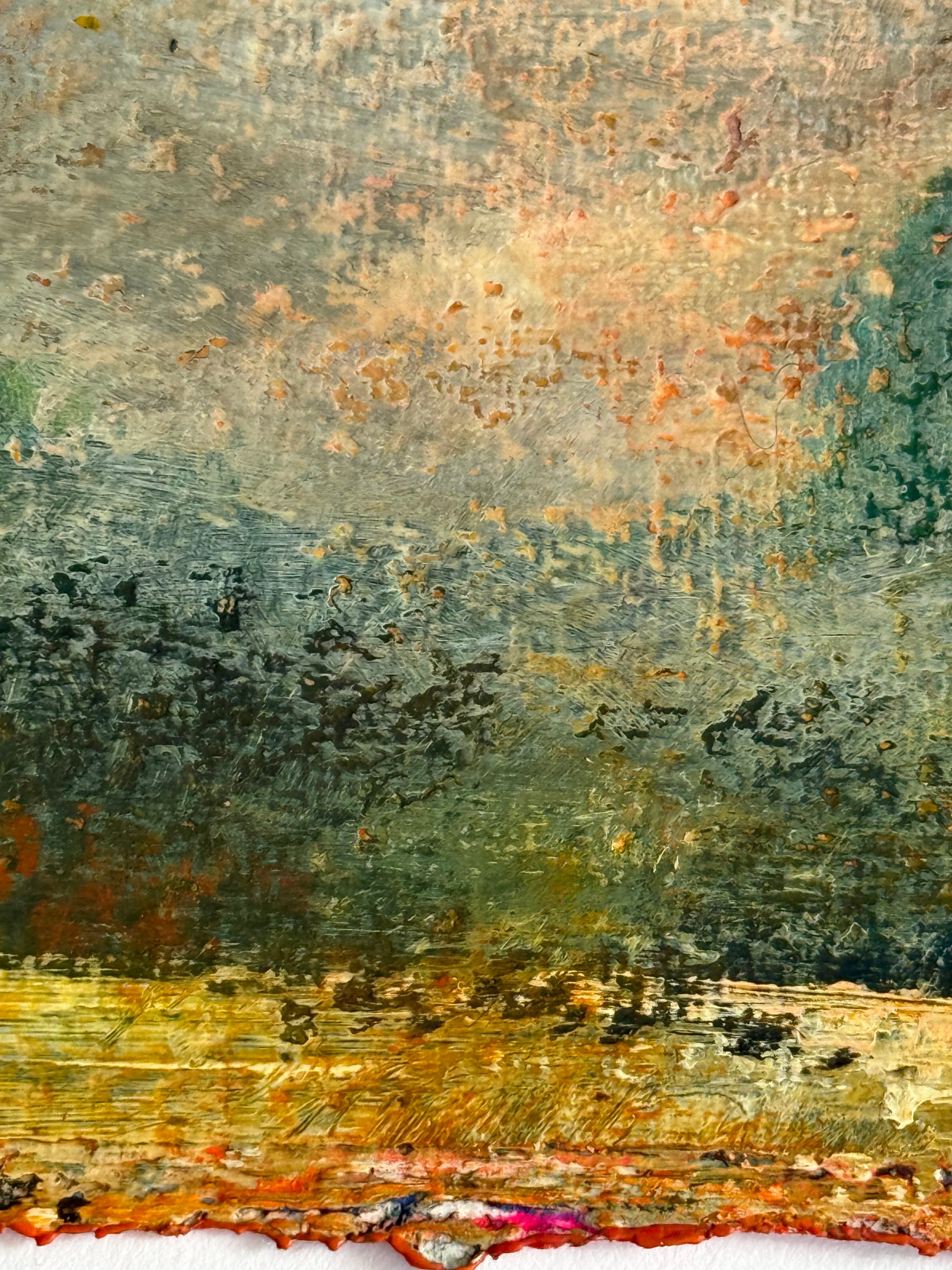 Depicting an atmospheric landscape as dusk fall s gently on the countryside.