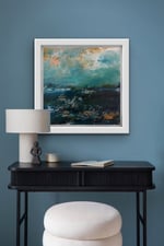 Framed in a white wood handmade professional frame it will measure approximately 25x25cm.