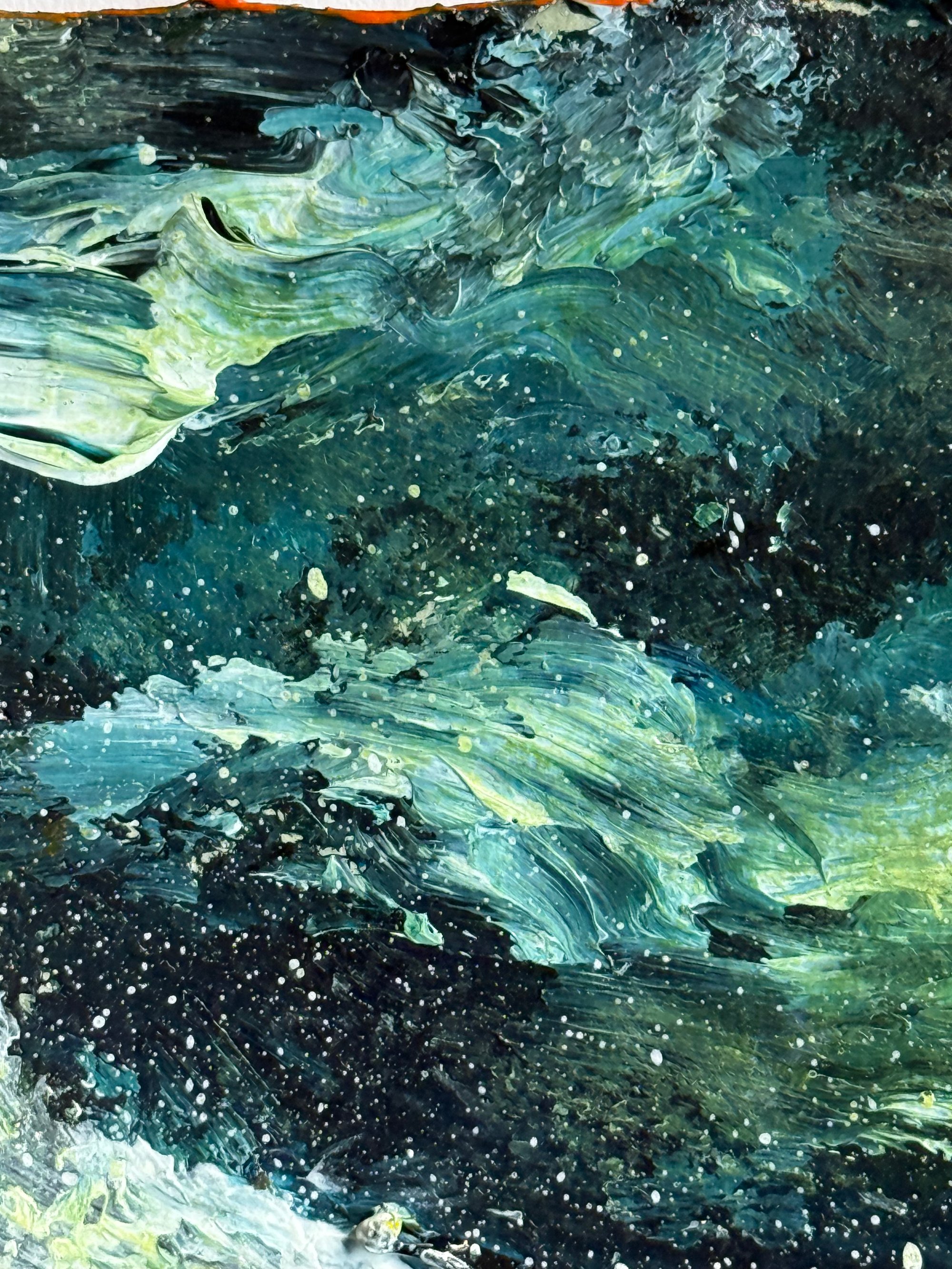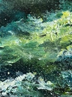 Textured seascape depicting the ferocity of a storm at sea. Textured and dramatic. Original painting on handmade paper..